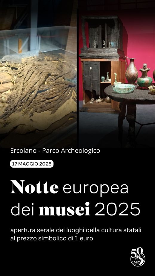 Parco archeologico di Ercolano. È recente la riapertura del Teatro Antico e già sabato 18 maggio 2024 l’appuntamento raddoppia. Alla visita diurna, grazie alla Notte Europea dei Musei – apertura straordinaria serale di musei e siti archeologici al costo simbolico di 1 euro – si aggiunge l’apertura in orario notturno dalle 20 alle 22. Ma il Parco quest’anno non solo raddoppia ma rilancia la sua offerta con l’apertura anche del Padiglione della barca e dell’Antiquarium. Il Teatro Antico potrà essere visitato: di giorno nei regolari turni di apertura 9.30, 10.30, 11.30, 14:.0, 15.30, 16.30, alle tariffe di 5 euro intero, 2 euro ridotto per ragazzi con età compresa tra i 18 e i 25 anni, 15 euro cumulativo Parco+Teatro; di notte nei tre turni di visita (20, 21, 22) con biglietto simbolico di 1 euro, il percorso del teatro sarà accompagnato con informazioni in lingua italiana. I gruppi per l’esplorazione dell’Antico Teatro saranno composti da 10 visitatori, che muniti di caschetto e torcia scenderanno per oltre venti metri sotto il materiale eruttivo attraverso le scale realizzate in età borbonica, alla scoperta della storia, da quella più antica che lo vide sede di opere messe in scena, al Settecento e Ottocento quando fu luogo scelto dai colti viaggiatori che giungevano a Napoli da ogni parte d’Europa, divenendo tappa del Grand Tour, fino ai tempi più recenti come luogo di rifugio durante la Seconda Guerra Mondiale, conservando testimonianze in graffiti e dipinti per ognuna di queste epoche. L’apertura straordinaria dell’Antiquarium e del Padiglione della Barca prevede ingresso e uscita esclusivamente dal cancello di corso Resina, orari dalle 20 fino alle 23, con ultimo ingresso alle 22.30. L’accesso sarà permesso a massimo 600 visitatori, anche per questi siti biglietto di ingresso al costo simbolico di 1 euro (eccetto le gratuità previste per legge). La bigliettazione avverrà on line fino alle 18 del giorno dell’evento, e presso la biglietteria del Parco a partire dalle 19.30 del giorno dell’evento, fino a esaurimento posti. Data la particolare convenienza, si raccomanda l’acquisto dei biglietti on line senza alcun costo aggiuntivo.