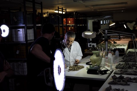 Le riprese della troupe Rai nei depositi del museo Archeologico nazionale di Adria per il programma “Italia. Viaggio nella bellezza”