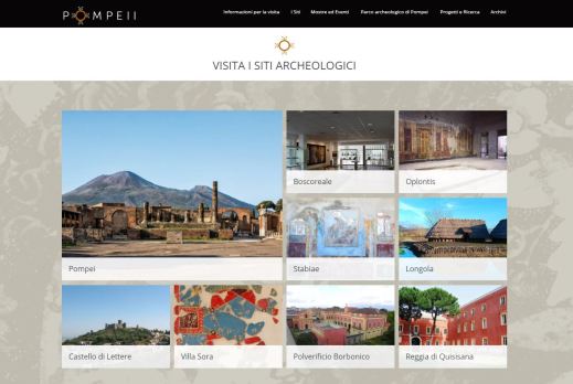 Dal 10 dicembre sarà online il nuovo sito web del Parco Archeologico di Pompei con una nuova veste grafica, ma soprattutto con una maggiore navigabilità e accessibilità per gli utenti e un più ricco contenuto testuale, di immagini e video. Il sito del Parco, che manterrà l’indirizzo http://www.pompeiisites.org e avrà le due versioni in italiano e inglese, prevede anche una landing page con le informazioni di base in ulteriori 7 lingue (tedesco, francese, spagnolo, russo, portoghese, giapponese e cinese) e porta in evidenza le informazioni su Pompei, ma anche sui siti periferici della Reggia di Quisisana, del Polverificio Borbonico, di Villa Sora e Longola che, oltre ai siti di Stabiae, Oplontis e l’Antiquarium di Boscoreale, rientrano nella competenza del Parco Archeologico di Pompei.