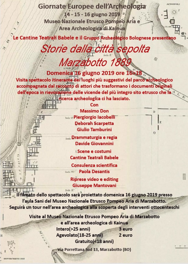 “Storie dalla città sepolta. Marzabotto 1889”: il film di Giuseppe Mantovani sullo spettacolo itinerante prodotto dalle Cantine Teatrali Babele protagonista al museo nazionale Etrusco “Pompeo Aria” di Marzabotto per le giornate europee dell’archeologia