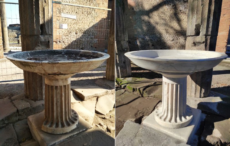 Il parco archeologico di Pompei ha avviato il restauro delle fontane pubbliche della città antica di Pompei. Si tratta di un progetto globale che comprende il restauro di più di 40 fontane pubbliche, il rilievo in 3D dei suddetti manufatti e lo scavo archeologico intorno ad alcune delle fontane che permetterà di indagare il loro rapporto con gli assi viari. Il restauro ha come obiettivo quello conservare il più a lungo possibile queste fontane e di restituirle ai visitatori nella loro migliore veste. Le fontane pubbliche presenti nel sito di Pompei erano parte integrante dell’articolato sistema di distribuzione dell’acqua interno alla città antica; nel tempo, esse sono state oggetto di studi specifici e di interventi di rifunzionalizzazione, diventando parte integrante del percorso di visita. Si tratta di oltre 40 manufatti, distribuiti su tutto il territorio della città antica, la maggior parte dei quali afferisce alla tipologia delle fontane con vasca e blocco erogatore, tre sono invece gli elementi monoblocco usati in funzione di erogatore, inseriti direttamente nel cordolo del marciapiede o sovrapposti ad esso; nell’area del Foro Triangolare è invece collocato l’unico esemplare di labrum, con bacino e supporto in marmo, probabilmente usato per le abluzioni sacre. Sulla base di un approfondito percorso di conoscenza, condotto, in fase progettuale, anche in collaborazione con l’Opificio delle Pietre Dure, si è cercato comprendere la natura dei materiali e degli agenti di degrado, definendo così le scelte operative.