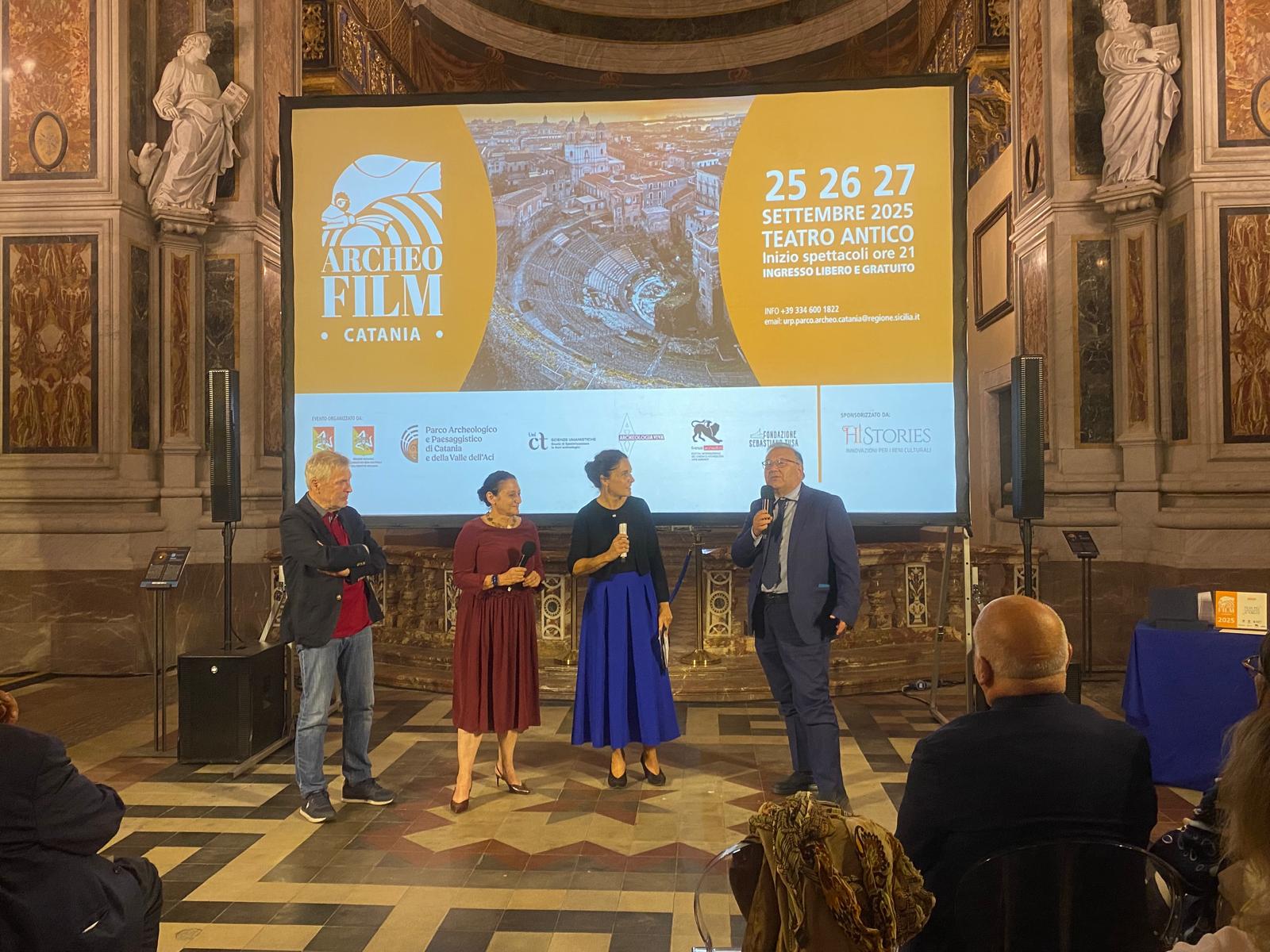 “Catania Archeofilm 2025” è stato organizzato dal parco archeologico di Catania e Valle dell’Aci della Regione Siciliana con Archeologia Viva/Firenze Archeofilm (Giunti editore), in collaborazione con università di Catania – Scuola di specializzazione in Beni Archeologici, e Fondazione Sebastiano Tusa. Scenario del festival, e sua location privilegiata, la straordinaria cavea del Teatro antico di Catania, complesso monumentale che, insieme all’Odèon, è custodito fra i caseggiati d’epoca di via Vittorio Emanuele. Grande soddisfazione è stata espressa dal direttore D’Urso: “Per la prima volta – ha detto – dopo il teatro, la musica e la danza il Teatro Antico di Catania ha ospitato una rassegna di cinema, in questo caso a tema archeologico. Un linguaggio trasversale, quello della settima arte, che vuole essere una forma di apertura verso il grande pubblico per coinvolgerlo nella conoscenza del patrimonio archeologico siciliano e universale”. La terza serata, complice il meteo incerto, si è spostata in via Crociferi, nella Chiesa barocca di San Francesco Borgia che, fra i capolavori del Settecento e la preziosa collezione di argenti e corredi liturgici dell’ordine dei Gesuiti, ha accolto il numeroso pubblico del Catania Archeofilm.