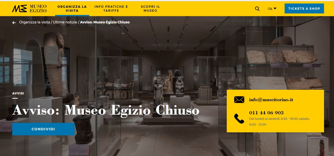 Il museo Egizio di Torino è chiuso dall’8 marzo 2020 per decreto come tutti i musei in Italia per contenere la diffusione del Coronavirus
