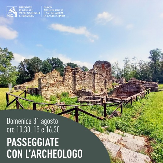 Fine estate 2025 a Castelseprio (Va). Domenica 31 agosto 2025, al parco archeologico di Castelseprio, alle 10, alle 15 e alle 16.30, “Passeggiate con l’archeologo”. Accompagnati dal direttore del parco archeologico, Luca Polidoro, i partecipanti scopriranno i misteriosi affreschi della chiesa di Santa Maria foris portas e le recenti scoperte emerse dagli scavi ancora in corso, vivendo un viaggio esclusivo nella storia del sito. Partenze dell’Info Point. Prenotazione consigliata (tel. 3366632727 – parcoarcheologico.castelseprio@cultura.gov.it). In caso di pioggia l’evento è sospeso. Si consiglia l’uso del parcheggio sito all’angolo tra via Castelvecchio e via Robinie, proseguendo poi a piedi per 10 minuti lungo via Castelvecchio fino all’Info Point. Si rammenta l’uso di scarpe robuste e di portare con sé una torcia.
