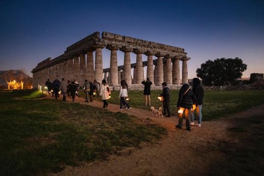 “Paestum al chiaro di luna”, le suggestive visite al buio con lanterne nel Santuario meridionale (foto pa-paeve)