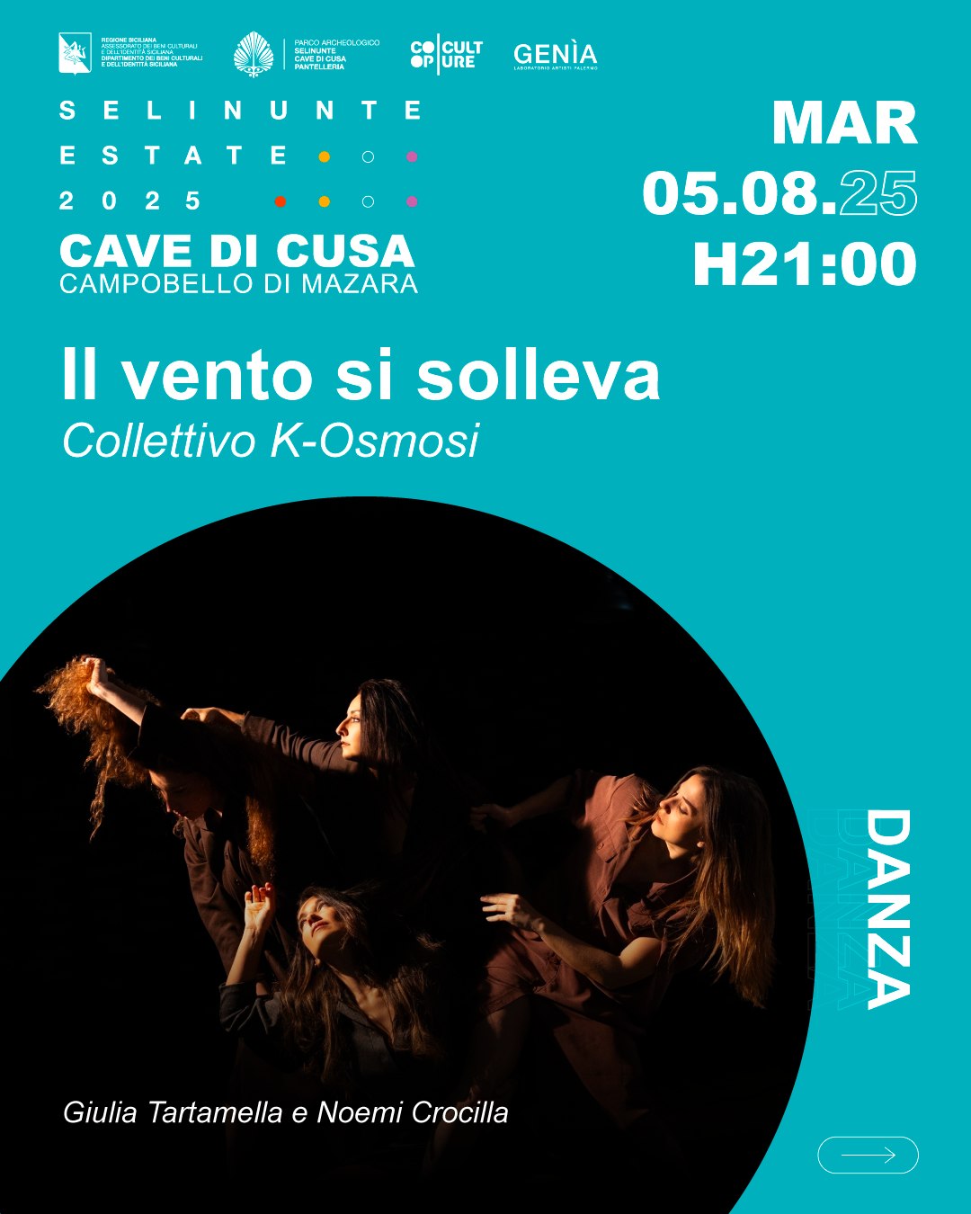Tre serate, un solo paesaggio: Cave di Cusa si fa palcoscenico con Selinunte Estate 2025. La bellezza senza tempo del sito archeologico di Campobello di Mazara (Tp) si apre all’arte, alla musica e alla danza con tre appuntamenti imperdibili sotto le stelle. Un’occasione speciale per vivere Selinunte Estate 2025 anche oltre i confini del Parco, valorizzando un luogo straordinario da riscoprire. Si inizia domenica 3 agosto 2025, alle 21, con “Tu sì ‘na cosa grande” con Cocò Gulotta e Lazzarella Orchestra. Un omaggio intenso e teatrale al genio di Domenico Modugno. Tra canzoni iconiche e narrazione d’autore, rivive “Mister Volare” a trent’anni dalla scomparsa. Biglietti: http://bit.ly/4lWIFpA. Si continua martedì 5 agosto 2025, alle 21, con “Il vento si solleva” con il Collettivo K-Osmosi. Una performance di danza contemporanea che intreccia poesia, corpo e resistenza. I capelli come simbolo di identità, vergogna e liberazione. Una voce per tutte le escluse della storia. Biglietti: http://bit.ly/4lQnEwt. Si chiude mercoledì 6 agosto 2025, alle 21, con “Le mille e una nota” con il Duo Sherazade. Clarinetto e chitarra in viaggio tra le melodie del mondo. Da Piazzolla a Machado, dal jazz ai suoni del Mediterraneo. Un racconto musicale ispirato alla magia di Sheherazade. Biglietti: http://bit.ly/44Vr0IQ. Biglietti disponibili online su coopculture.it o al botteghino del parco archeologico di Selinunte.