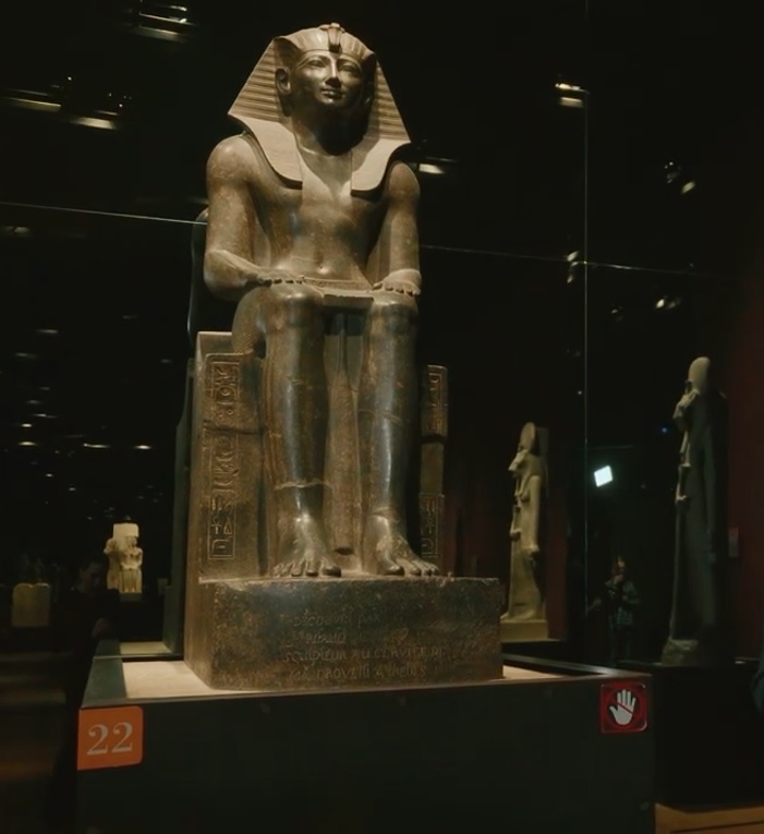 Sempre nella Galleria dei Re colpisce la statua di Seti II, la statua più grande presente al museo Egizio: è lunga 5,16 metri. Ha una statua assolutamente gemella che si trova al Louvre. Questa statua, assieme alla sua gemella, sono state trovate nella parte Nord della prima corte del tempio di Karnak. Quando oggi si va a visitare il tempio di Karnak si passa attraverso la porta monumentale, il cosiddetto primo pilone, costruito da Nectanebo I, e sulla nostra sinistra vi è una cappella fatta costruire da Seti II, e nella parte anteriore vi erano appunto due statue entrambe alte 5,16 metri. “Il nome di Seti II era scritto dove ora c’è un buco. Si legge ancora “ptah”, parte del nome Merenptah, ma il nome Seth è stato scavato, tolto quasi in un segno di damnatio memoriae. Seth era legato con tutto ciò che veniva definito come male, come non ordine, colui che dominava il deserto. Cosa dice il testo? Dice che il sovrano delle due terre è amato da Amon Ra, signore dei troni delle due terre. La stessa formula viene ripetuta su ambo i lati”. Ma come è arrivata a Torino questa statua? “È arrivata a Genova e poi è stata trasportata su fusti di cannoni fino a Torino”, racconta Greco. “Una volta arrivata qui non c’era una sala che la potesse ospitare e fu lasciata fuori, coperta con della paglia per preservarla dalle intemperie dell’inverno. E quando Jean François Champollion, il padre dell’egittologia, che arriva qui per studiare la collezione, vide questa statua fuori, scrisse un pamphlet in cui lui stesso si impersonifica in Seti II. E Seti II scrive al Re di Sardegna e gli dice “io re dei re mi trovo ora prigioniero in una stalla piemontese, cerca di trovare un luogo adeguato alla mia statura di gran re”.