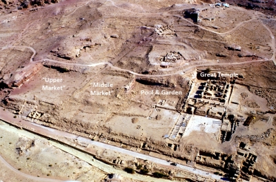 “Nel corso del XX secolo”, ricorda l’archeologa americana, “una vasta area del centro di Petra si credeva essere il sito del mercato della città. Questa ipotesi si basava sul fatto che eravamo di fronte a un grande spazio aperto privo di costruzioni in una città dalle grandi tradizioni commerciali”. Sebbene Petra sia stata oggetto di indagini archeologiche per più di un secolo, i “mercati” sono rimasti inesplorati mentre l’attenzione è stata focalizzata sulle tombe, i templi, le chiese, la strada colonnata e la porta ad arco, le cui rovine dominano il paesaggio della città antica. “Nel 1998”, continua Bedal, “un sondaggio preliminare e il successivo scavo del cosiddetto mercato più basso, ha rivelato i resti di una piscina monumentale (43 x 23 m; 2,5 m di profondità) con isola-padiglione. In connessione con la piscina sono stati trovati i resti di un sistema idraulico elaborato – canali, tubazioni e un serbatoio di diversione (castellum) – che trasportavano l’acqua dalla sorgente di Ein Brak sulle colline circostanti alla piscina e irrigava la grande terrazza. Questa combinazione di caratteristiche ricreative e idrauliche ha portato alla teoria che la terrazza sia stato il sito di un giardino. Giardini simili accanto a una piscina sono noti nei complessi del coevo palazzo di Erode il Grande della vicina Giudea. Il complesso giardino e piscina di Petra è l’unico esempio di giardino nabateo noto nella documentazione archeologica, ed è uno dei pochi luoghi antichi di giardino da scavare o studiare nella regione”.