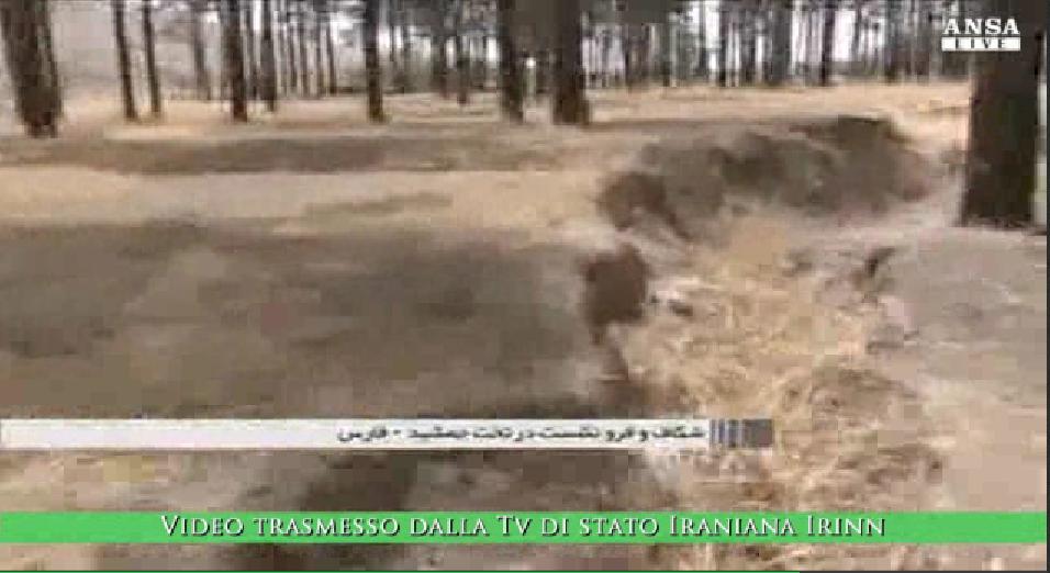 L’impressionante frattura nella piana di Persepoli a un passo dalla terrazza: frame dal video della tv di Stato iraniana Irinn rilanciato dall’Ansa