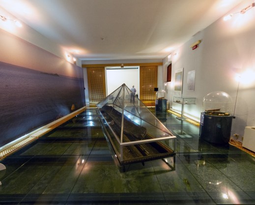 La piroga monossila protostorica (XIV-XI secolo a C.) scoperta nel 1989 nel lago di Bolsena e conservata al museo della Navigazione delle Acque interne a Capodimonte (foto mnai)