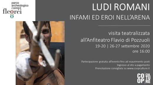 All’Anfiteatro Flavio di Pozzuoli, alle 16 sia per il sabato 19 che per la domenica 20, parte invece “Ludi romani” visita teatralizzata a cura di CoopCulture alla scoperta della figura di gladiatori. Infami ed eroi, i gladiatori incarnavano miseria e splendore della società romana, fortuna e sciagura, decretata in pochi attimi, decisivi della sopravvivenza o di una morte atroce. “Dice un vecchio proverbio che il gladiatore decide le sue mosse nell’arena, glie le suggeriscono il volto dell’avversario, i movimenti delle mani, l’inclinazione stessa del corpo che egli studia attentamente” (Seneca, Epistulae Morales ad Lucilium, III, XII, 1). A fronte di una impeccabile preparazione fisica, assicurata dal duro allenamento che si svolgeva nelle scuole gladiatorie, molto del combattimento si giocava sulla improvvisazione. Questa visita speciale coinvolge gli spettatori e li cala in uno dei momenti storici più densi e travolgenti del periodo romano, all’interno di un monumento straordinario che l’area Flegrea conserva: l’Anfiteatro Flavio. Vita e morte, uomo o bestia, eroe o infame. Di fronte al popolo solo lo spettacolo cruento era importante. Un archeologo e un gladiatore dialogano insieme al pubblico per raccontare, in una esperienza avvincente e unica, cosa accadeva veramente nelle arene. La visita teatralizzata si ispira anche alla mostra “Gladiatori” in programmazione imminente al Mann. Info: https://www.coopculture.it/events.cfm?id=1622.