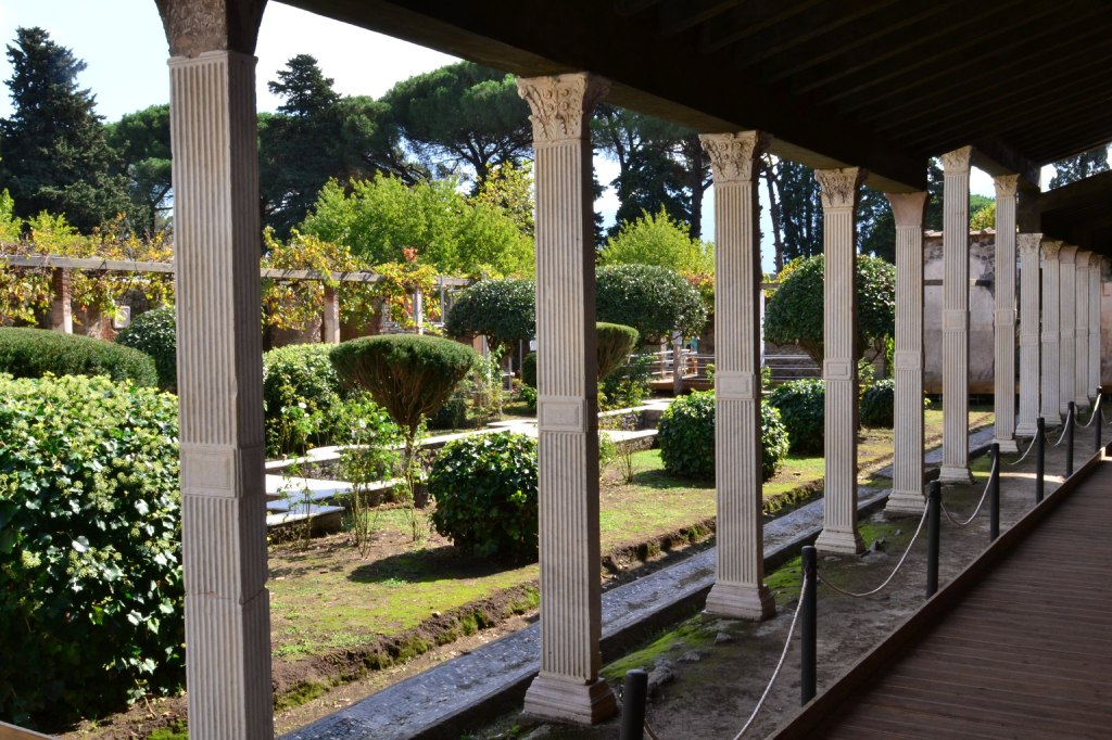 “Le pitture di III Stile con soggetti della guerra di Troia – sottolinea Zuchtriegel -, gli atleti nel peristilio, tutto doveva conferire agli spazi un’atmosfera di grecità, il che equivaleva a cultura, erudizione, ozio. Così come il salone nero doveva trasportare gli ospiti in un’aula di un palazzo greco, il peristilio con la grande vasca al centro e il complesso termale adiacente aveva la funzione di creare una scenografia da ginnasio greco, che veniva accentuata ulteriormente dalle scene atletiche successivamente apportate. Quando Cicerone parla, in una lettera al suo amico Attico, di sculture gymnasiodes, cioè confacenti a un ginnasio che vuole allestire nella sua villa privata, rende esplicito il concetto dietro questo tipo di architettura: ci si crea una specie di Grecia finta nel giardino dietro casa, che ovviamente non ha più nulla a che vedere con il ginnasio greco nella sua forma e funzione originale. È tutto un gioco, uno spettacolo appunto; quello che conta è l’atmosfera in cui ci si immerge per una serata, tra bagni caldi e vino campano. Del resto, “la vita (è) un teatro”, come si diceva a quei tempi: la frase, incisa su un bicchiere d’argento del tesoro di Boscoreale, appare anche nell’Antologia palatina: “tutta la vita (è) un teatro” (X 72,1). Nell’ottica di una complessa messa in scena va visto anche l’accurato restauro delle pitture di III stile: la veneranda antichità di queste decorazioni aggiungeva ulteriore valore agli spazi in cui gli ospiti del padrone di casa soggiornavano”.