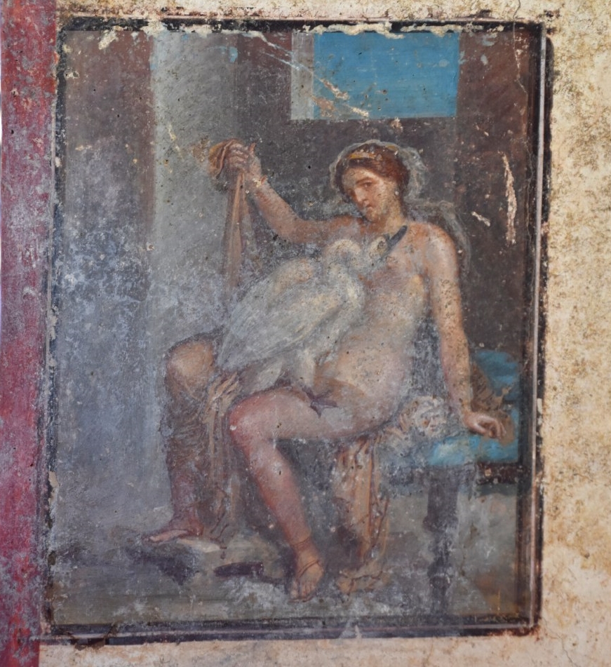 “E chi erano tali ospiti? – si chiede Zuchtriegl -. Mentre è verosimile che gli amici più stretti del proprietario della domus si riunivano negli oeci che si aprono sul grande peristilio a sud, tra gli ospiti invitati alle cene meno intime possiamo immaginare anche cittadini meno abbienti, liberti e clientes di vario genere. Il padrone li invitava per assicurarsi del loro consenso elettorale, per promuovere la candidatura di un suo amico o parente o semplicemente per affermare il suo status sociale. Dobbiamo dunque immaginare tra i partecipanti persone che erano separate da un certo divario economico e sociale dal padrone di casa, proprio come avviene anche nella cena romanzata di Trimalcione. Gente che forse frequentava le terme pubbliche, ma che raramente aveva occasione di venire in casa di qualcuno che possedeva un impianto termale privato. In parte forse anche gente che non sapeva come arrivare alla fine del mese e che davanti alle portate più o meno abbondanti ed esotiche, di cui il fregio con pesci, frutti di mare e cacciagione nel grande oecus corinzio dava un’idea fin troppo accattivante, non smettevano di meravigliarsi perché una simile pappata non gli era mai capitata. Gente, che non aveva necessariamente la preparazione culturale per decifrare le immagini mitologiche (il che aumentava solo il loro fascino), e che faticava a leggere la scritta in greco ‘Alexandros / Helena’ vicino alla rappresentazione dei due personaggi nel salone nero, e che forse non ricordava che Alexandros era un altro nome per Paride. Gente, infine, che nella vita aveva poche occasioni per divertirsi e che non si annoiava, come qualche ricco già sazio di queste cose, durante le esibizioni di musicisti, pantomimi e danzatrici che tra le portate trovavano spazio davanti alla grande finestra del “salone nero”. In una parola – conclude Zuchtriegel -, un pubblico grato e affamato, che allo spettacolo orchestrato dal padrone di casa applaudiva con sincera ammirazione e che dopo una serata nel “ginnasio” del nostro personaggio pompeiano ne avrebbe parlato ancora a lungo”.