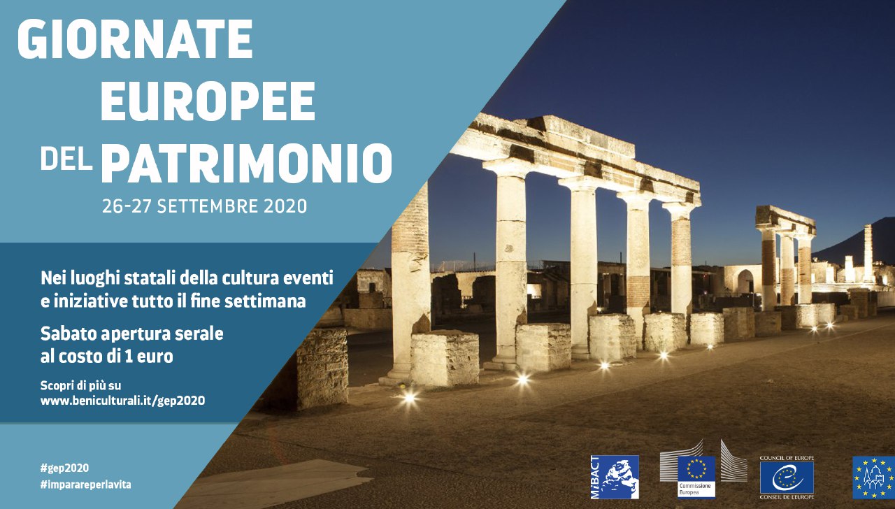 Il parco archeologico di Pompei partecipa anche quest’anno alle Giornate europee del Patrimonio 2020, indette sabato 26 e domenica 27 settembre 2020, in tutti i luoghi statali della cultura dal ministero per i Beni e le Attività culturali, con approfondimenti su campagne di scavo e interventi di restauro a Pompei, visite guidate a Stabia, Oplontis e a Villa Regina e percorsi serali illuminati al costo simbolico di 1 euro. Il tema delle Giornate europee del Patrimonio del 2020 è “Imparare per la vita” e prende spunto da quello proposto dal Consiglio d’Europa “Heritage and Education – Learning for Life”, per richiamare i benefici che derivano dall’esperienza culturale e dalla trasmissione delle conoscenze nella moderna società. L’intento è quello di riflettere sul ruolo che la formazione ha avuto, e continua ad avere, nel passaggio di informazioni, conoscenze e competenze alle nuove generazioni, e sul valore che il sapere tradizionale può assumere in rapporto alle inedite sfide del presente e al crescente peso della moderna tecnologia.