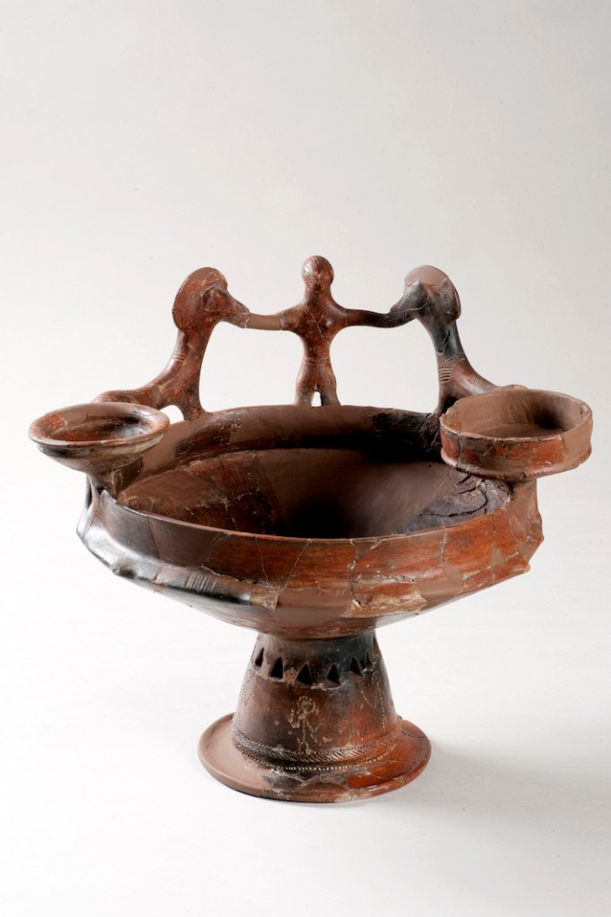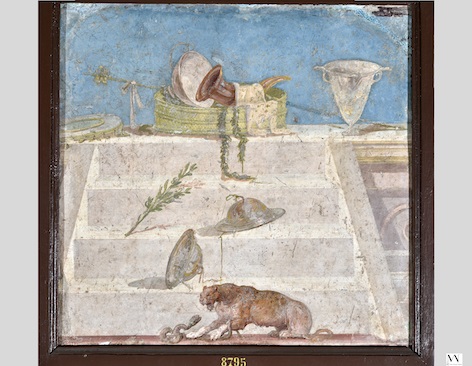 In un apparente gioco di contrasti, concluderanno questo itinerario online due splendidi reperti, che sintetizzano, nella loro diversità, la ricchezza e la varietà del patrimonio del Mann: per la Sezione Preistoria e Protostoria, una coppa di ceramica di impasto dell’età del Ferro da Capua. Per le rinnovate Sale degli Affreschi, ultimo e colorato post della campagna con un frammento ritrovato nei Praedia di Iulia Felix. In questa pittura pompeiana, su una piccola gradinata sono esposti una serie di elementi che rimandano al mondo di Dioniso, dio dell’ebrezza e della vitalità.