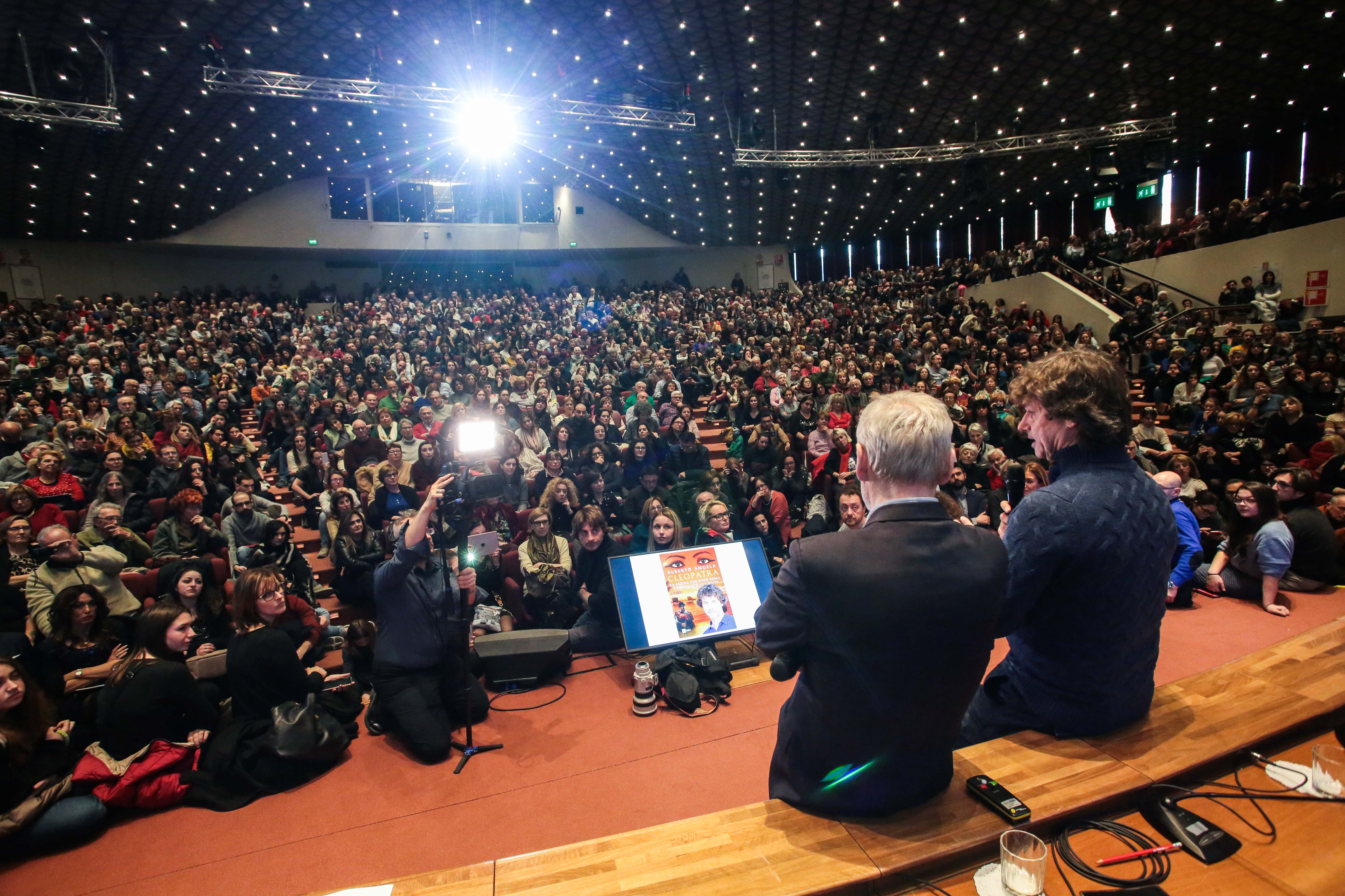 Alberto Angela in un auditorium gremito protagonista in una edizione di TourismA (foto AV)