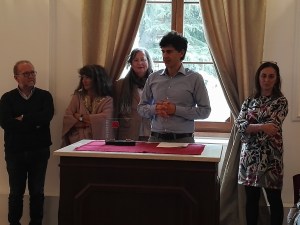 La giuria del premio Paolo Orsi: da sinistra, Franco Nicolis, Maria Longhena, Elli Kriesch, Gabriele Carletti, con Alessandra Cattoi (foto Graziano Tavan)