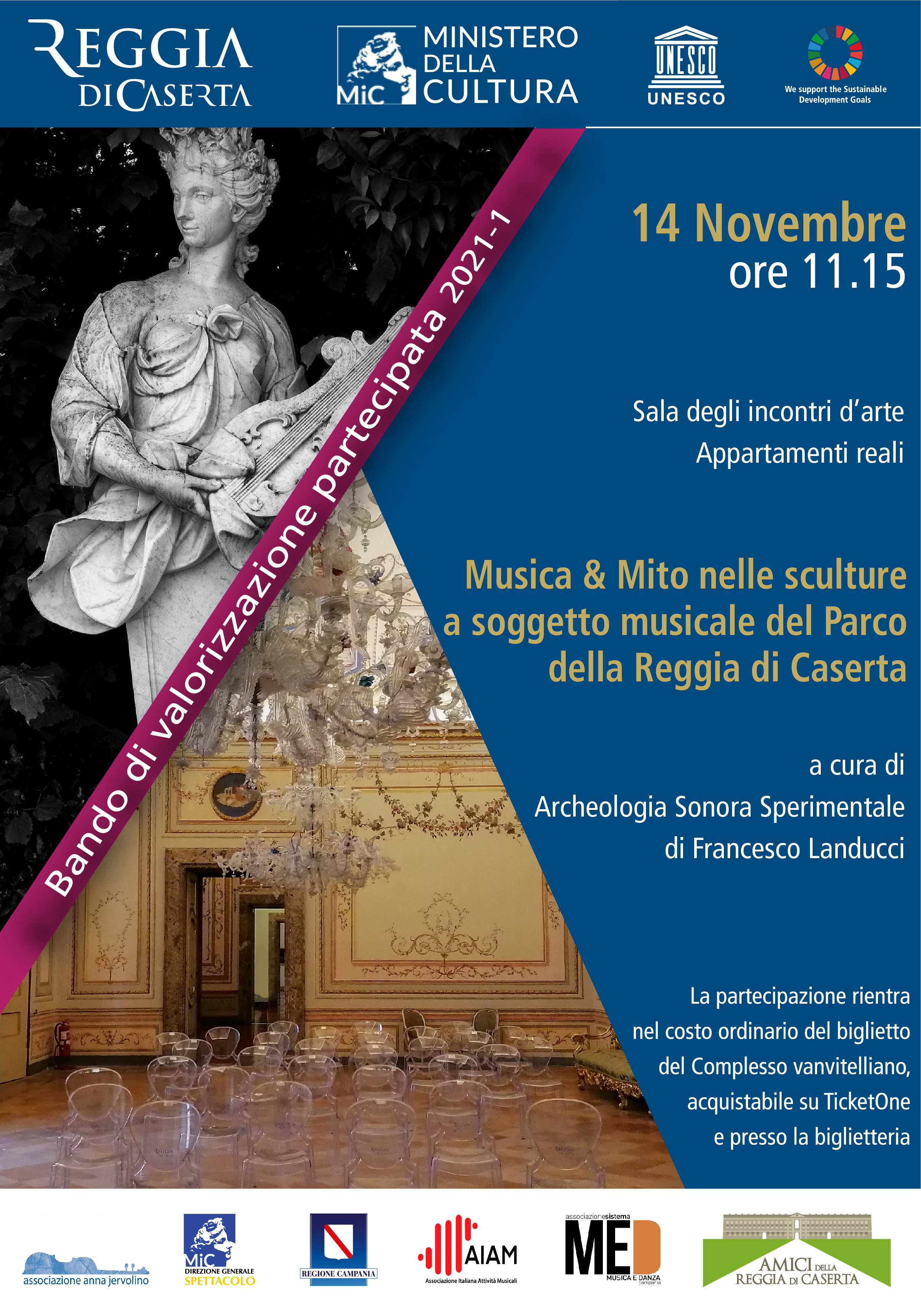 Domenica 14 novembre 2021, alle 11.15, nella Sala degli Incontri d’arte, “Paesaggi Sonori. Musica & Mito nelle sculture a soggetto musicale del Parco della Reggia di Caserta” a cura di Archeologia Sonora Sperimentale di Francesco Landucci propone una performance con l’utilizzo di strumenti musicali del periodo ellenico – romano, ricostruiti sulla base dell’iconografia dell’epoca, tra cui anche le statue a soggetto mitologico musicale del Complesso vanvitelliano. L’iniziativa è stata selezionata nell’ambito del bando di valorizzazione partecipata della Reggia di Caserta. Un’azione artistica carica di pathos, dal sapore antico la cui caratteristica unica è l’utilizzo dell’elettronica. I suoni e le melodie vengono prodotti singolarmente in tempo reale per poi essere registrati e rimandati in contemporanea in loop, come se a comporre fosse un insieme di musicisti a ricreare dei suggestivi paesaggi sonori. Le suggestioni di questa innovativa e singolare esibizione nascono dalle statue che, in più punti, costellano il Parco Reale. Il Complesso vanvitelliano è uno scrigno d’arte, in tutte le sue espressioni. La musica, nelle sue differenti forme, è parte dell’esperienza di visita e di conoscenza della Reggia di Caserta. La partecipazione rientra nel costo ordinario del titolo di accesso al Complesso vanvitelliano, acquistabile su TicketOne e alla biglietteria in piazza Carlo di Borbone.