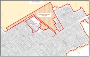 Il grande cantiere di via dell’Abbondanza a Pompei dove si affacciano le sei domus restaurate (foto parco archeologico Pompei)