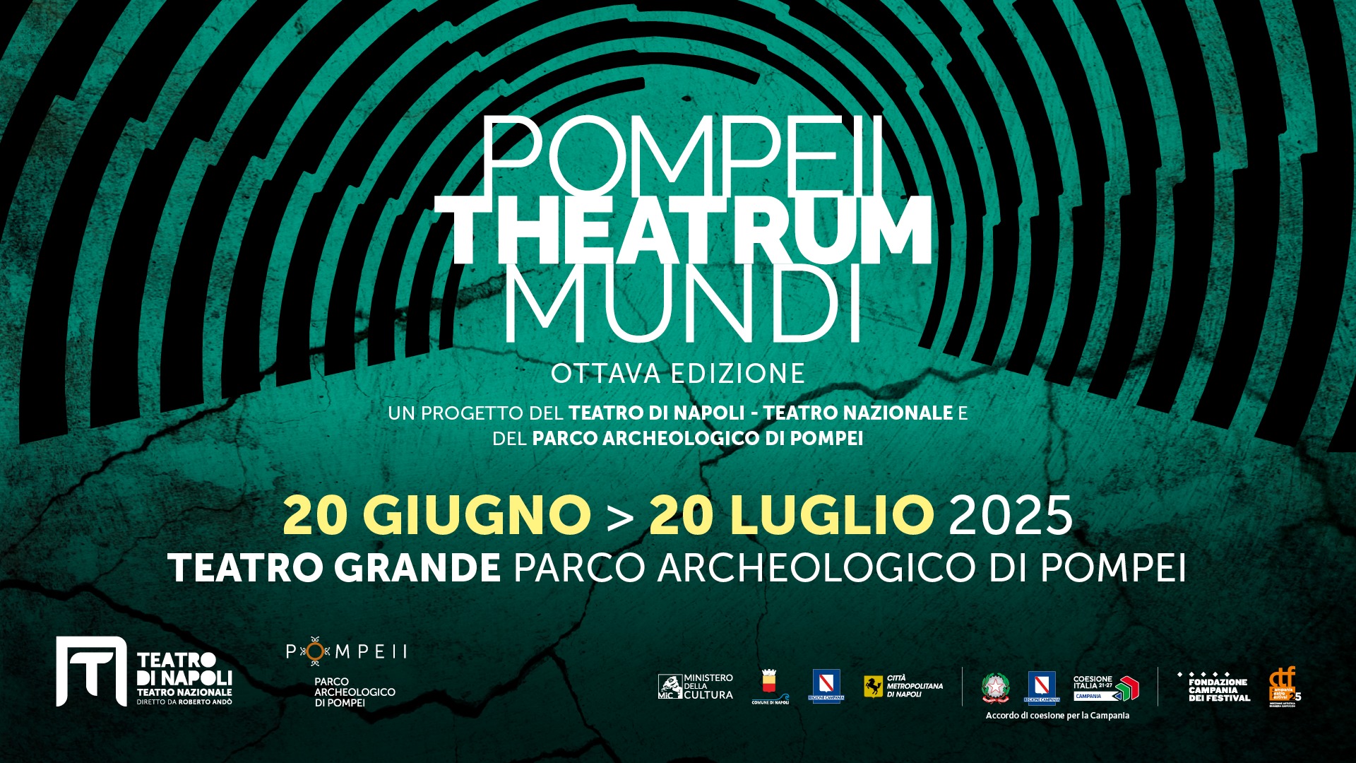Il Teatro di Napoli-Teatro Nazionale presieduto da Luciano Cannito e diretto da Roberto Andò ed il parco archeologico di Pompei diretto da Gabriel Zuchtriegel presentano l’ottava edizione della rassegna POMPEII THEATRUM MUNDI, in programma dal 20 giugno al 20 luglio 2025 al Teatro Grande di Pompei, realizzata con il sostegno del ministero della Cultura, del Comune di Napoli, della Regione Campania, della Città Metropolitana di Napoli, e in collaborazione con Campania Teatro Festival. Il programma della nuova edizione della rassegna, ormai tra le maggiori e più attese dell’estate italiana dei festival, è stato illustrato al Teatro Mercadante di Napoli dal direttore Roberto Andò e dal direttore generale Gabriel Zuchtriegel, preceduti dagli interventi istituzionali del presidente Luciano Cannito, del sindaco dei Napoli Gaetano Manfredi, del Capo di Gabinetto della Regione Campania Almerina Bove. In calendario quattro spettacoli: GOLEM diretto da Amos Gitaï che aprirà la rassegna venerdì 20 giugno 2025, alle 21, con replica sabato 21 giugno sempre alle 21; seguirà NOTTE MORRICONE, con regia e coreografia di Marcos Morau venerdì 4 e sabato 5 luglio 2025, alle 21. I successivi due spettacoli, ovvero ELETTRA di Sofocle con la regia di Roberto Andò, in scena venerdì 11, sabato 12 e domenica 13 luglio 2025 e LISISTRATA di Aristofane con la regia di Serena Sinigaglia di venerdì 18, sabato 19 e domenica 20 luglio 2025, avranno inizio alle 20 (non alle 21): un inizio con la luce naturale del giorno, che ripropone la stessa modalità in cui queste opere venivano rappresentate nell’antica Grecia.