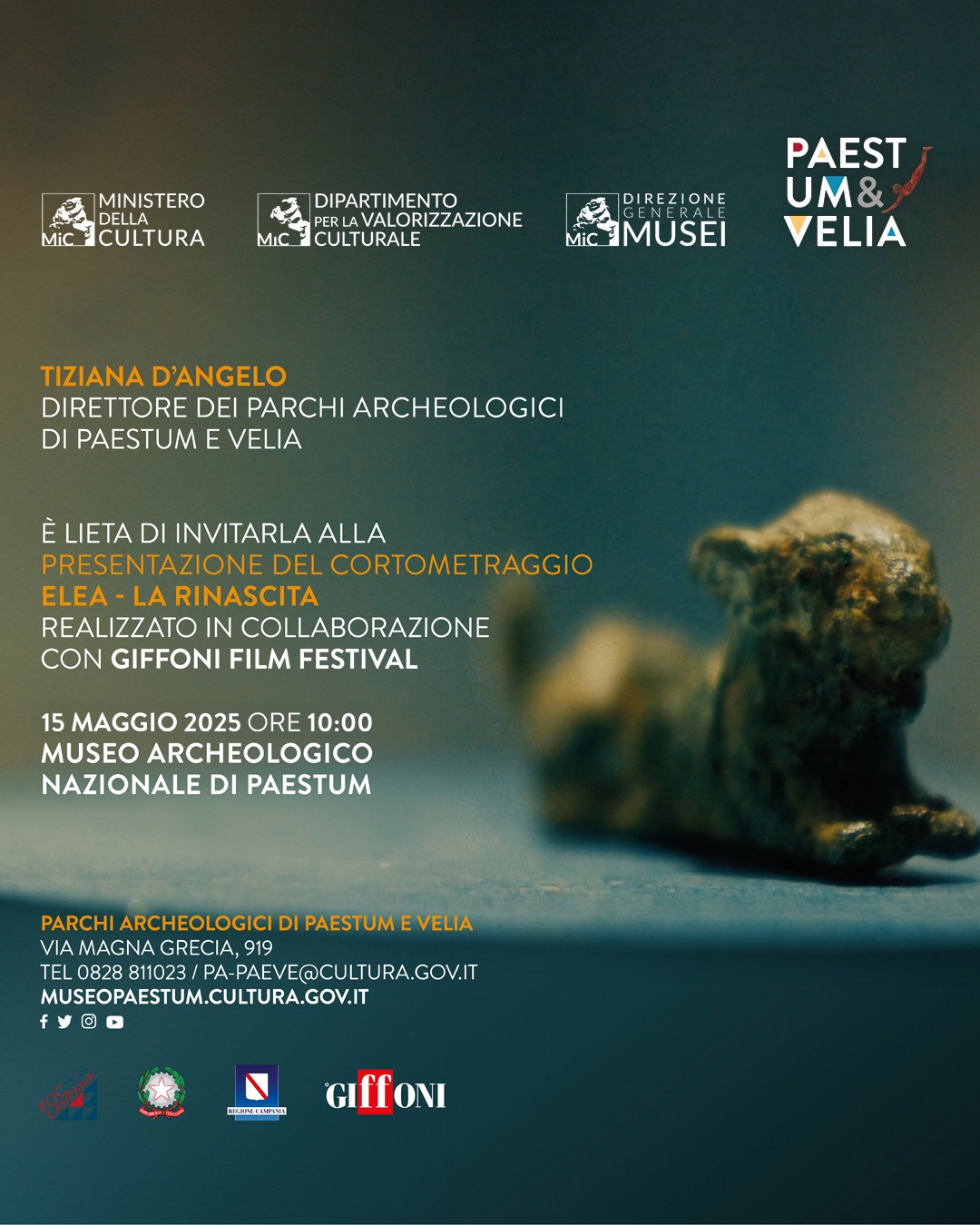 Il 15 maggio 2025, alle 10, nella sala Spazio pubblico del museo Archeologico nazionale di Paestum, i parchi archeologici di Paestum e Velia presentano in anteprima il cortometraggio “Elea – La Rinascita”, un progetto cinematografico che affonda le radici nell’antichità per riflettere su temi quanto mai attuali: migrazione, identità e rinascita. Nato da un’idea di Tiziana D’Angelo, direttore dei Parchi, con la regia di Luigi Marmo e la sceneggiatura di Luca Apolito, il corto è realizzato in collaborazione con il Giffoni Film Festival e co-finanziato dalla Regione Campania. L’opera si inserisce in un più ampio percorso di valorizzazione del sito di Velia, avviato con la mostra “Elea – La Rinascita” (2023–2024), e ispirato alle recenti e significative scoperte emerse durante gli scavi archeologici sull’Acropoli, tuttora in corso. L’anteprima sarà l’occasione per riflettere, insieme a studenti, istituzioni e pubblico, sull’universalità della storia antica e di come il cinema possa restituire senso, emozione e accessibilità a un passato che continua a parlare alle nuove generazioni.