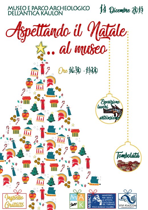 “Aspettando il Natale … al Museo” è l’idea in vista delle festività del museo Archeologico e parco Archeologico dell’antica Kaulon. Sabato 14 dicembre 2019, dalle 16.30 alle 19, a Monasterace, caratteristico centro del reggino, il museo Archeologico dell’antica Kaulon, diretto da Rossella Agostino, propone “Aspettando il Natale … al Museo”. L’iniziativa, di grande valenza formativa, a cura dei Servizi Educativi, prevede un’accattivante esposizione di lavori artistici realizzati con la tecnica del mosaico dagli alunni di alcune classi dell’istituto comprensivo di Monasterace – Riace – Stilo – Bivongi e la più classica e amata tradizione ludica legata al Santo Natale: una tombolata indirizzata a ogni tipologia di pubblico. Nel museo dell’antica Kaulonia del Polo museale della Calabria, sono esposti i reperti rinvenuti nelle campagne di scavo effettuate da Paolo Orsi all’inizio del XX secolo e in occasione delle più recenti indagini, avviate dagli anni ’80, nell’abitato e nelle aree sacre. Una sezione è dedicata ai reperti subacquei, elementi architettonici quali, rocchi di colonne e contenitori di pece (Kadoi) rinvenuti nel tratto di mare prospiciente l’antica Kaulonia. Il parco archeologico, che si estende parallelamente alla linea di costa, nei pressi del museo, comprende un ampio settore dell’abitato antico e l’area santuariale con il tempio dorico di Punta Stilo. Visibili tra gli altri, i resti di una delle case più lussuose dell’antica Kaulonia, la Casa del Drago, dal nome del mostro marino raffigurato nel mosaico pavimentale policromo di età ellenistica, oggi esposto al Museo e dell’edificio termale con vasche fittili da cui proviene il mosaico pavimentale con delfini.