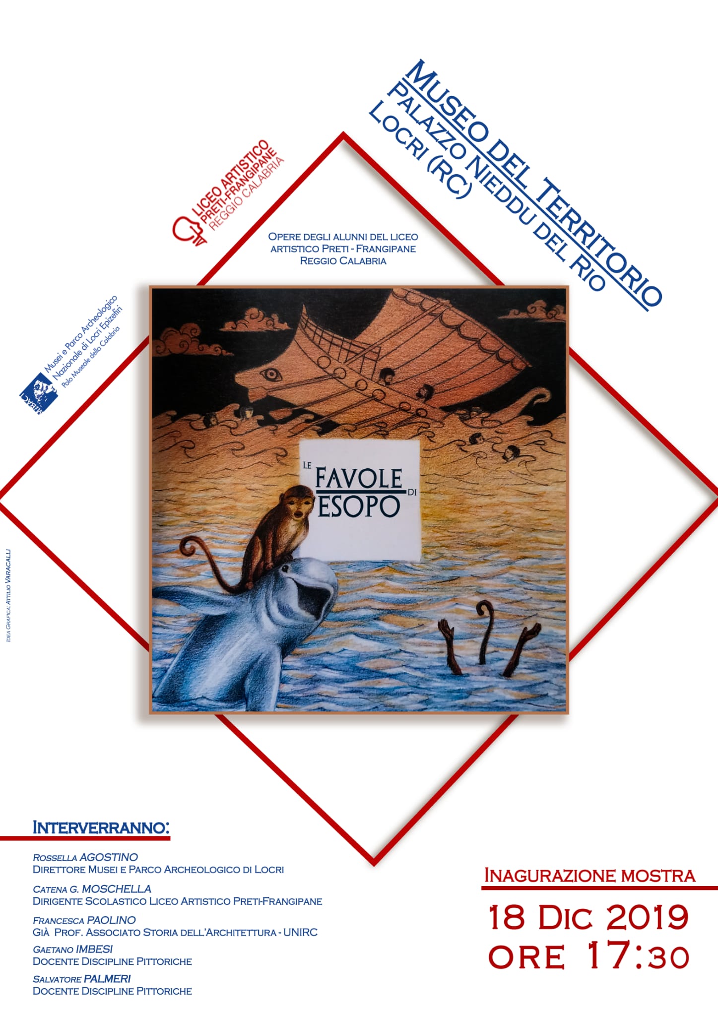 Natale con le favole di Esopo al museo. È stata inaugurata il 18 dicembre 2019 al museo Archeologico nazionale di Palazzo Nieddu Del Rio di Locri la mostra “Le favole di Esopo” con gli interventi di Rossella Agostino, direttore Musei e Parco Archeologico Nazionale di Locri; Catena G. Moschella, dirigente scolastico Liceo Artistico Preti – Frangipane; Francesca Paolino, già professore associato storia dell’architettura – UNIRC; Gaetano Imbesi e Salvatore Palmeri, docenti discipline pittoriche. In mostra oltre 40 bellissime tavole realizzate da allievi dell’indirizzo figurativo dell’Istituto “A. Frangipane-M. Preti” di Reggio Calabria seguiti dal docente Imbesi. “Tavole policrome che colgono di ogni favola il significato morale che Esopo nel VI sec. a. C. volle dare a questa raccolta”, interviene Rossella Agostino. “Sarà per il museo un’occasione di incontro tra forme diverse d’arte, un richiamo al mondo antico che coinvolgerà, grazie alle iniziative collaterali programmate per il periodo di durata della mostra, anche giovani scolaresche”. Il museo Archeologico nazionale di Palazzo Nieddu Del Rio ospita al piano terra e al primo piano manufatti dal territorio locrese frutto di recenti campagne di scavo dai risultati scientificamente interessanti e manufatti dal sito prostorico di Canale – Janchina. È stata così completata la narrazione della storia e della archeologia locrese. I tre musei locresi, quindi, – due al Parco archeologico dedicati l’uno al periodo greco e l’altro alle testimonianze di età romana – e il Palazzo Nieddu, dedicato al periodo anteriore alla fondazione della colonia e alle scoperte dal territorio, offrono al pubblico una visione completa della Locride tra IX a.C. fino ad età tardo antica.