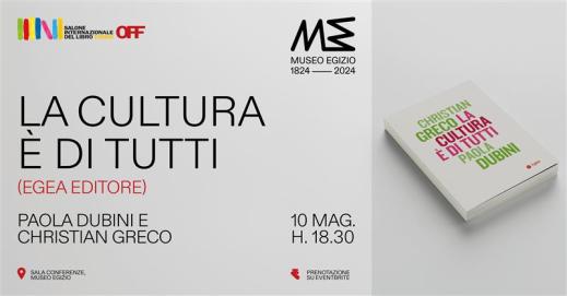 Nell’ambito del Salone internazionale del Libro OFF 2025, appuntamento al museo Egizio di Torino: sabato 10 maggio 2025, alle 18.30, in sala conferenze, incontro con Paola Dubini e Christian Greco, autori del libro “La cultura è di tutti” (Egea Editore). L’evento è gratuito con prenotazione obbligatoria su Eventbrite al link https://www.eventbrite.it/…/la-cultura-e-di-tutti… Nei giorni successivi all’evento, la conferenza sarà trasmessa anche in streaming sulla nostra pagina Facebook e sul nostro canale YouTube. Affermare che “la cultura è di tutti” può suonare demagogico o ambiguo. Significa forse che la cultura deve farsi prodotto da consumare in un eterno presente, dimenticando la dimensione di racconto che ci riconnette al passato? E poi qual è il confine fra “di tutti” e “di nessuno”? Se sulla carta, a partire dall’art. 9 della Costituzione, la cultura è di tutti, le statistiche dimostrano che nei fatti resta invece nella testa, nel cuore e nel portafoglio di pochi. Nelle pagine di questo dialogo, gli autori – diversi per formazione, età, genere e percorso professionale, ma uniti da una comune sensibilità – provano a dare significato alla provocazione che dà titolo al libro, intrecciando riflessioni che toccano, tra l’altro, la rilevanza della cultura materiale in un’epoca sempre più digitale, il rapporto tra discipline in apparenza lontane ma che proprio insieme sviluppano conoscenza, l’importanza di coinvolgere la comunità in un’ottica di inclusione e accessibilità – fisica, intellettuale ed economica – di un patrimonio che deve essere vissuto come di tutti noi.