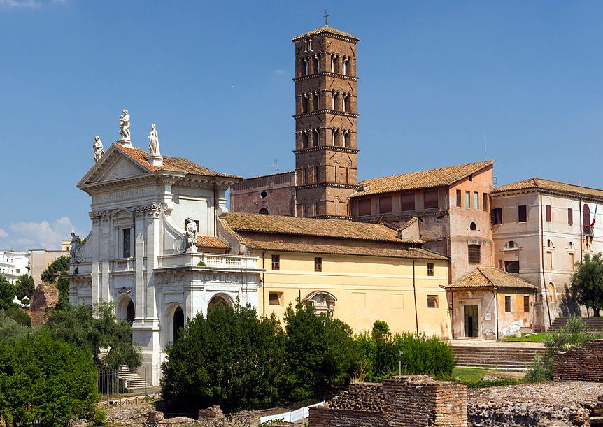 “Oggi il complesso, stratificato e ricco di storie, è conosciuto anche come Basilica di Santa Francesca Romana, poiché dal 1440 ospita la tomba della santa che proprio in questa chiesa si era offerta come oblata. Santa Francesca, da sempre ben voluta dai romani, assunse presto l’appellativo di Romana ed è particolarmente importante in questo periodo storico che stiamo attraversando perché considerata protettrice delle pestilenze. Non a caso, il restauro condotto sul soffitto ligneo seicentesco disegnato da C. Lambardi (vedi 9 marzo 2021: a un anno dall’inizio del lockdown e nel giorno di Santa Francesca Romana, protettrice dalle pestilenze, riaperta al culto la basilica di Santa Francesca Romana al Foro romano, dopo un delicato intervento di restauro al soffitto ligneo seicentesco promosso dal parco archeologico del Colosseo e dal Fondo Edifici per il Culto. Presentato il volume “Il restauro della Speranza” | archeologiavocidalpassato) si è concluso il 9 marzo 2021, giorno in cui si festeggia la Santa, come segno di buon auspicio”.