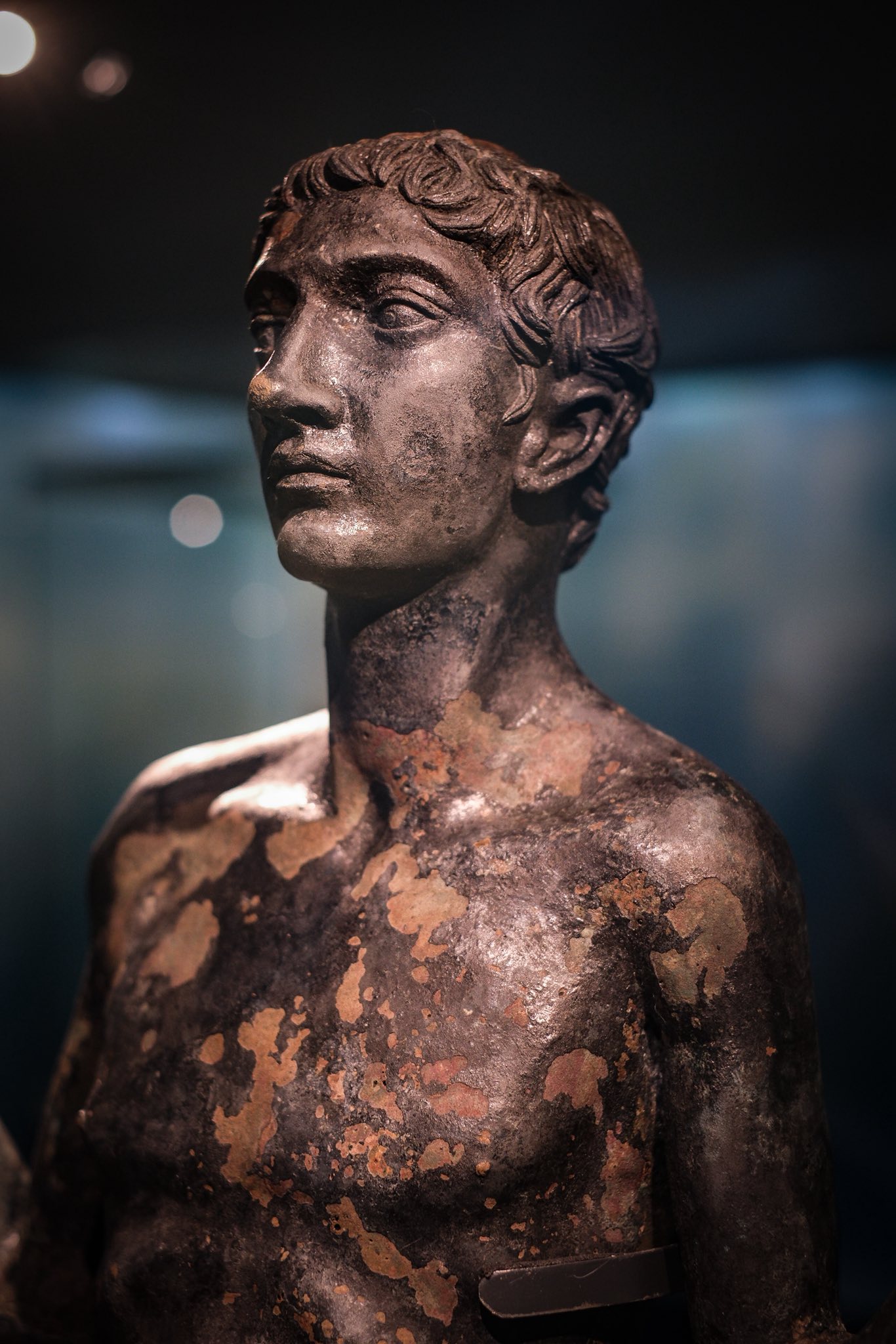 Dettaglio della statua in bronzo di Apollo Arciere scoperta nel Bagno grande di San Casciano dei Bagni (foto mic)