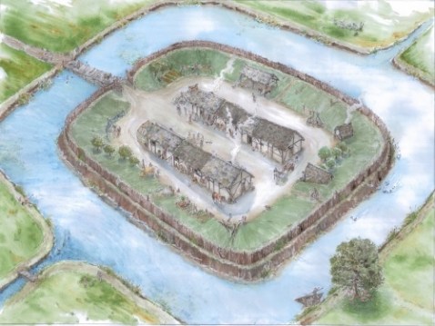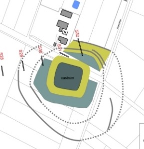 La nascita del castrum (X–XIII secolo) Risale a questo periodo la realizzazione delle fortificazioni con fossati e terrapieni. Nei sondaggi è stato messo in luce il terrapieno più esterno, di circa 30 metri di larghezza, e parzialmente anche il sistema di fossati che lo circondavano. Il terrapieno, livellato e inciso dalle arature, aveva uno spessore massimo di circa un metro ed era costituito da un deposito pluristratificato composto da riporti prevalentemente limo sabbiosi. La formazione dell’argine deve essere avvenuta a più riprese come suggerito dalla presenza, al tetto di alcuni riporti, di buche di palo e concentrazioni di carboni, concotto e laterizi. Oltre ai laterizi erano presenti, tra i materiali di scarico, anche numerose scaglie di pietra -in alcuni casi con tracce di lavorazione- e pochi frammenti di ceramica comune di epoca romana, ceramica da fuoco e frammenti di pietra ollare. Il terrapieno era delimitato da due fossati, uno di grandi dimensioni all’interno, adiacente all’insediamento, e uno di dimensioni minori all’esterno. La parte indagata del fossato interno presentava una larghezza parziale di 10 metri per una profondità massima indagata di 2,6 metri dal piano di campagna. A circa 30 metri di distanza dal fossato principale, separato dal terrapieno, è stato localizzato il secondo fossato della larghezza di circa 6 metri, indagato per una profondità di circa un metro. La lunghezza dei saggi non ha consentito di verificare la presenza di un terzo fossato di delimitazione esterna che risulta visibile dalla foto aerea.