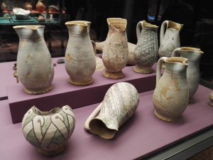 Boccali in maiolica del XIII secolo dal pozzo dentro la chiesa di Santa Croce di Ravenna (foto Graziano Tavan)