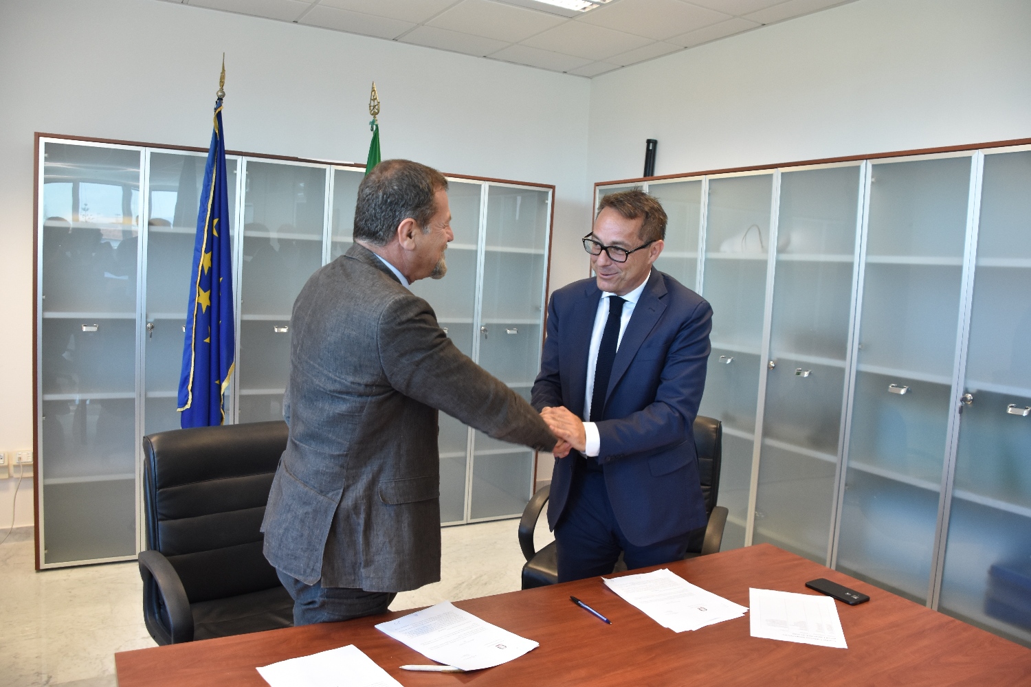 La firma del protocollo d’intesa tra il procuratore del Tribunale di Torre Annunziata, procuratore Pierpaolo Filippelli, e il Parco archeologico di Pompei, dg Massimo Osanna (foto parco archeologico di Pompei)