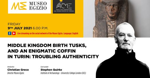 Torino. Al museo Egizio Stephen Quirke (Petrie Museum e UCL), su “Middle Kingdom birth tusks, and an enigmatic coffin in Turin: troubling authenticity”: oggetti autentici o interpretazioni moderne?. Conferenza on line in collaborazione con Acme