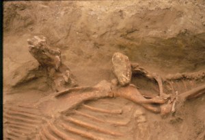 Dettaglio della sepoltura di un cavallo e due cani nella necropoli longobarda dell’Ortaia a Povegliano Veronese (foto Graziano Tavan)