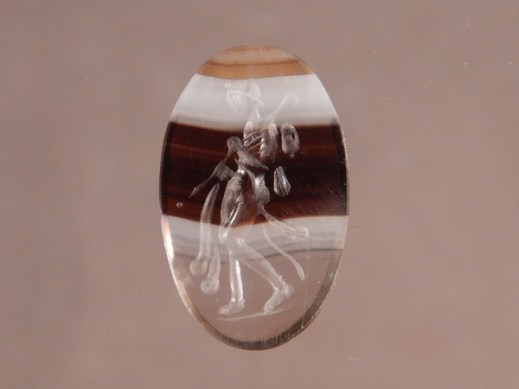 Gemma di agata, incisa con una figura mitologica, scoperta dal team di Ca’ Foscari nel sito della villa romana di Lio Piccolo nella laguna di Venezia (foto unive)