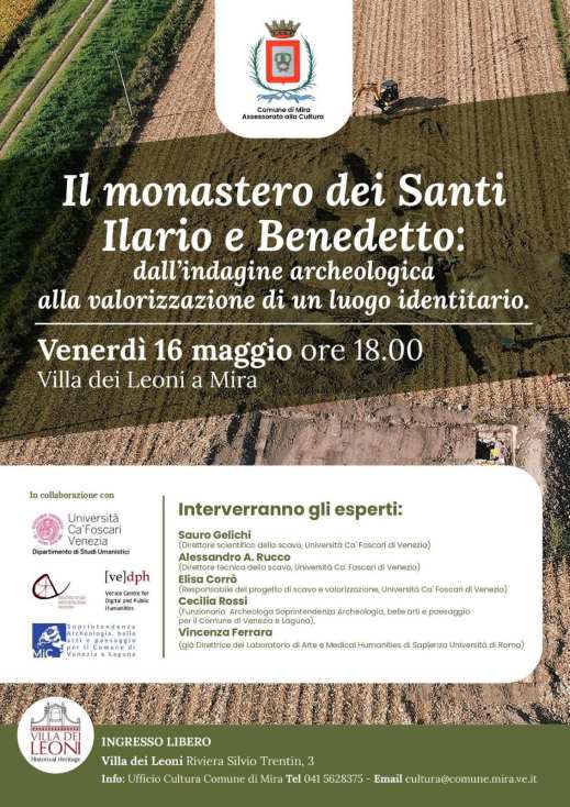 Mira (Ve). A Villa dei Leoni la conferenza “Il monastero dei Santi Ilario e Benedetto: dall’indagine archeologica alla valorizzazione di un luogo identitario” con Sauro Gelichi, Alessandro A. Rucco, Elisa Corrò (unive), Cecilia Rossi (sabap-ve), Vicenza Ferrara (uniroma)