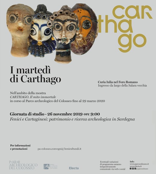 “Fenici e Cartaginesi: patrimonio e ricerca archeologica in Sardegna” è il tema della giornata di studi promossa dal parco archeologico del Colosseo, diretto da Alfonsina Russo, nell’ambito del ciclo “I martedì di Carthago” a corollario della mostra “CARTHAGO. Il mito immortale”, al Parco archeologico del Colosseo fino al 29 marzo 2020. Appuntamento martedì 26 novembre 2019 alla Curia Iulia nel Foro Romano a partire dalle 9, occasione di aggiornamento sui nuovi studi e sulle attività in corso sul mondo fenicio-punico in Sardegna, con l’obiettivo di stimolare e aprire un dibattito per il futuro, coinvolgendo le diverse Istituzioni attive sul territorio e nell’ambito della ricerca. Aprono la Giornata di studi i saluti dei curatori dell’evento, Alfonsina Russo, direttore del parco archeologico del Colosseo, e Paolo Xella dell’università di Tübingen, col contributo al coordinamento di Martina Almonte e Federica Rinaldi (parco archeologico del Colosseo), Francesca Guarneri (soprintendenza Archeologia Belle Arti e Paesaggio per l’Area Metropolitana di Roma la Provincia di Viterbo e l’Etruria Meridionale), e José Ángel Zamora López (Escuela Española de Historia y Arqueología-CSIC). La Giornata presenterà le nuove acquisizioni, i progetti in corso e le azioni di tutela del patrimonio fenicio e punico in Sardegna, coinvolgendo le diverse Istituzioni attive sul territorio e nell’ambito della ricerca. Nella prima sessione verranno presentate da parte della soprintendenza Archeologia Belle Arti e Paesaggio per la città metropolitana di Cagliari e le province di Oristano e Sud Sardegna, della soprintendenza per le province di Sassari e Nuoro e del Polo Museale della Sardegna i risultati delle attività di ricerca e di valorizzazione. Nel pomeriggio proseguono gli interventi, tra le attività del Polo Museale fino all’inserimento della Sardegna Fenicia e Punica nel contesto Mediterraneo, coinvolgendo l’università della Tuscia. La Giornata di Studio mira quindi a costituire un’occasione di aggiornamento sui nuovi studi e sulle attività in corso sul mondo fenicio-punico in Sardegna, con l’obiettivo di stimolare e aprire un dibattito per il futuro.
