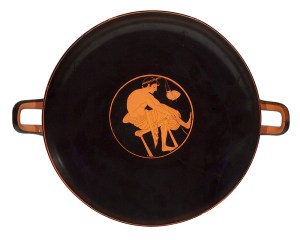 Kylix con al centro figura di atleta in mostra alla Centrale Montemartini di Roma (foto museiincomune)