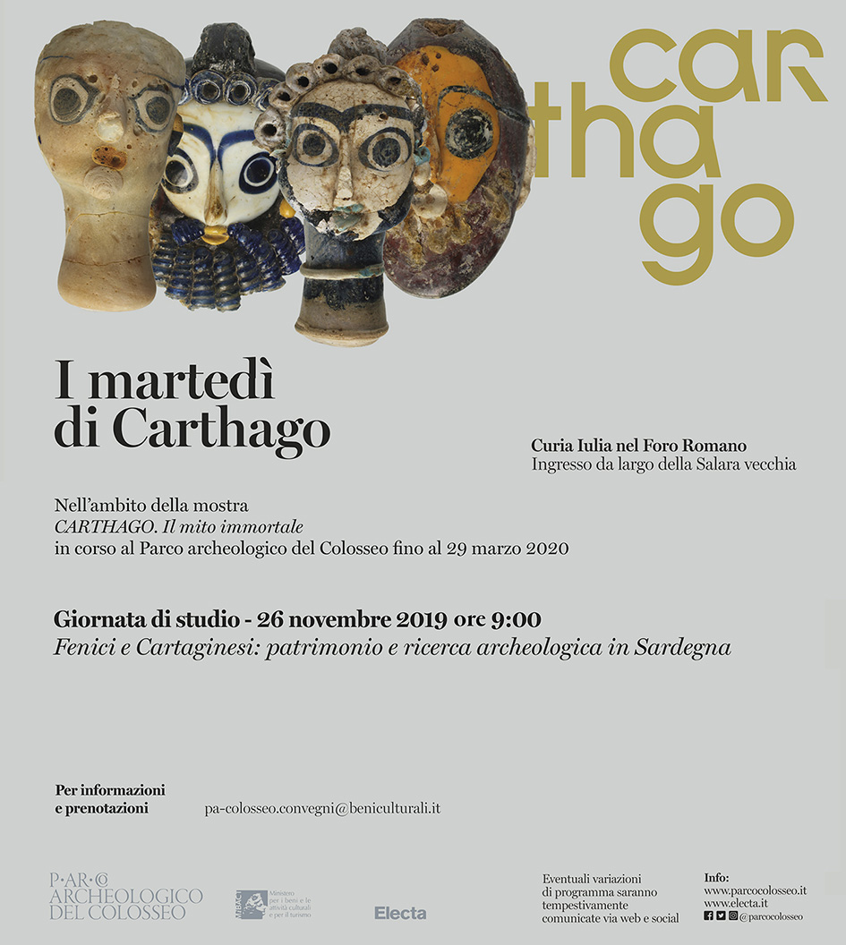 “Fenici e Cartaginesi: patrimonio e ricerca archeologica in Sardegna” è il tema della giornata di studi promossa dal parco archeologico del Colosseo, diretto da Alfonsina Russo, nell’ambito del ciclo “I martedì di Carthago” a corollario della mostra “CARTHAGO. Il mito immortale”, al Parco archeologico del Colosseo fino al 29 marzo 2020. Appuntamento martedì 26 novembre 2019 alla Curia Iulia nel Foro Romano a partire dalle 9, occasione di aggiornamento sui nuovi studi e sulle attività in corso sul mondo fenicio-punico in Sardegna, con l’obiettivo di stimolare e aprire un dibattito per il futuro, coinvolgendo le diverse Istituzioni attive sul territorio e nell’ambito della ricerca. Aprono la Giornata di studi i saluti dei curatori dell’evento, Alfonsina Russo, direttore del parco archeologico del Colosseo, e Paolo Xella dell’università di Tübingen, col contributo al coordinamento di Martina Almonte e Federica Rinaldi (parco archeologico del Colosseo), Francesca Guarneri (soprintendenza Archeologia Belle Arti e Paesaggio per l’Area Metropolitana di Roma la Provincia di Viterbo e l’Etruria Meridionale), e José Ángel Zamora López (Escuela Española de Historia y Arqueología-CSIC). La Giornata presenterà le nuove acquisizioni, i progetti in corso e le azioni di tutela del patrimonio fenicio e punico in Sardegna, coinvolgendo le diverse Istituzioni attive sul territorio e nell’ambito della ricerca. Nella prima sessione verranno presentate da parte della soprintendenza Archeologia Belle Arti e Paesaggio per la città metropolitana di Cagliari e le province di Oristano e Sud Sardegna, della soprintendenza per le province di Sassari e Nuoro e del Polo Museale della Sardegna i risultati delle attività di ricerca e di valorizzazione. Nel pomeriggio proseguono gli interventi, tra le attività del Polo Museale fino all’inserimento della Sardegna Fenicia e Punica nel contesto Mediterraneo, coinvolgendo l’università della Tuscia. La Giornata di Studio mira quindi a costituire un’occasione di aggiornamento sui nuovi studi e sulle attività in corso sul mondo fenicio-punico in Sardegna, con l’obiettivo di stimolare e aprire un dibattito per il futuro.