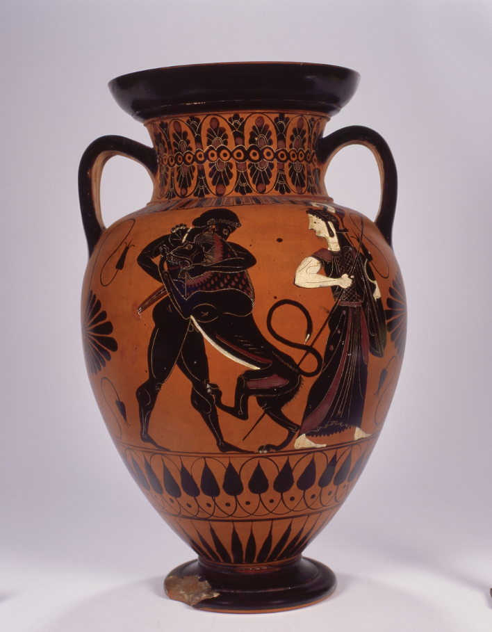 Lastra dipinta etrusca arcaica da Cerveteri: il combattimento tra Achille e Pentesilea, in cui la regina delle Amazzoni si lancia, contro l’eroe greco che la sconfiggerà (foto sabap vt-em)
