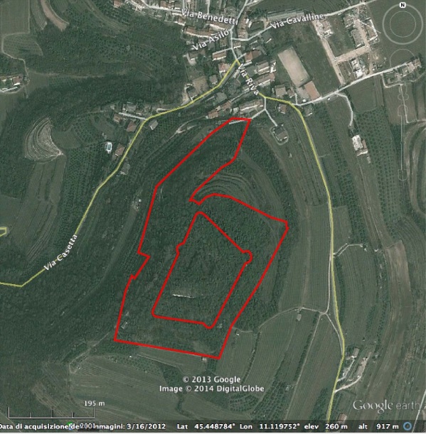 Planimetria del sito del colle di San Briccio (Lavagno, Vr) dalla scheda del Catalogo generale dei Beni culturali (foto mic)