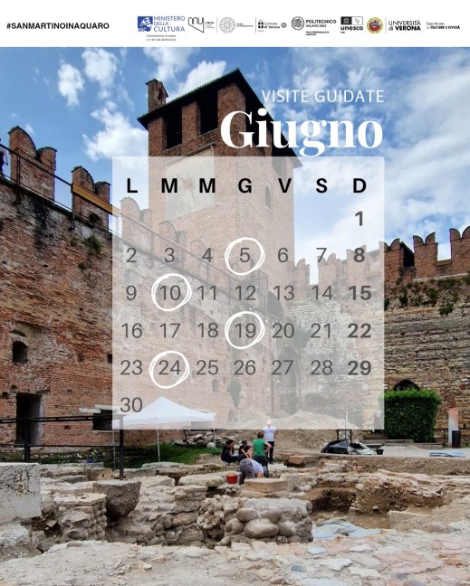 A poco più di tre settimane dall’inizio dello scavo (12 maggio 2025) alla riscoperta della chiesa di San Martino in Aquaro, all’interno del cortile di Castelvecchio a Verona, e quando la campagna di sei settimane è al giro di boa, i Musei Civici di Verona organizzano quattro turni di visite guidate gratuite condotte dagli archeologi impegnati nelle attività di scavo: appuntamento il 5 giugno 2025, ore 16; il 10 giugno 2025, ore 10; il 19 giugno 2025, ore 16; il 24 giugno 2025, ore 10. Prenotazione obbligatoria alla Segreteria didattica dei Musei Civici alla mail segreteriadidattica@comune.verona.it, o ai numeri +39 045 8036353 – +39 045 597140 dal lunedì al venerdì, dalle 9 alle 13 e dalle 14 alle 16, il sabato dalle 9 alle 13.
