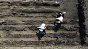 Grande edificio romano a San Basilio: sistema di fondazione con pali lignei alla base del muro perimetrale (foto unipd)