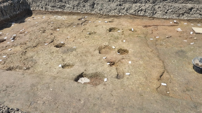 I buchi di palo della capanna portata alla luce nelal trincea D del sito preromano di San Basilio ad Ariano nel Polesine (foto graziano tavan)