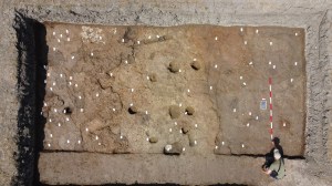 Quello che invece ci interessa di più anche per le prospettive future è la trincea più meridionale dove compare una struttura insediativa, una capanna, i resti di una casa con i suoi piani pavimentali, le buche per i pali portanti, le strutture che dovevano reggere l’alzato, anche dei piani focati e dei resti di attività. Le azioni di quest’anno sono state rivolte a mettere in luce con chiarezza questo tipo di organizzazione di questo piccolo segmento dell’abitato per poterlo poi indagare meglio negli anni futuri. Diciamo che quest’anno abbiamo fatto molto lavoro preliminare. Per questo motivo abbiamo pochi materiali e molta documentazione di strati, di livelli e possibilità di ricostruzione”.