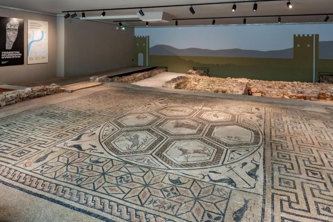 Il percorso invita a scoprire i segreti dell’antica città romana camminando sui basoli del decumano minore che attraversava la città da Est a Ovest. Si potranno ammirare i raffinati mosaici dell’atrio e del triclinium di una ricca domus e scoprire le abitudini alimentari di chi viveva in Trentino duemila anni fa. La visita prosegue all’area archeologica di Palazzo Lodron dove si potrà ammirare un’antica vineria, vedere le mura meridionali della città e quanto è rimasto di una torre. Il percorso termina alla Villa romana di Orfeo, una ricca abitazione situata all’esterno della cinta muraria. Qui in un allestimento affascinante e suggestivo si potrà vedere lo straordinario mosaico pavimentale che raffigura il mitico cantore, oltre a numerosi vani, fra cui un impianto termale con lo spogliatoio e la stanza per il bagno caldo.
