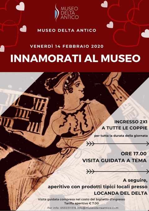 Innamorati al museo. Speciale San Valentino al museo del Delta Antico di Comacchio: per tutta la giornata del 14 febbraio 2020 ingresso 2×1 a tutte le coppie con un appuntamento da non perdere alle 17 con una visita guidata a tema compresa nel costo del biglietto (7 euro: info 0533.311316; info@museodeltaantico.com). E per chiudere la giornata aperitivo con prodotti tipici locali alla locanda del Delta. Visitare il museo del Delta Antico vuol dire intraprendere un viaggio nel tempo per un’esperienza nel delta del Po, crocevia del mondo antico. Il museo è incentrato infatti sulle testimonianze dell’antico delta del Po, nella zona in cui sfociava fino al XII secolo il ramo principale dell’Eridano/Po, che per secoli ha costituito uno snodo di commerci e di civiltà, un importante punto di giunzione tra il mondo adriatico e mediterraneo e l’Europa continentale. Attraverso l’esposizione di quasi duemila reperti e grazie a suggestivi apparati di guida e descrizione è stata narrata la storia di questi luoghi dalla nascita della Pianura Padana, milioni di anni, fa sino al Medioevo, con particolare attenzione alle fasi di epoca classica, con la città etrusca di Spina, al mondo romano (con la nave romana ritrovata a Comacchio nel 1981 con l’intero suo carico), all’alto medioevo con la nascita di Comacchio che fino al IX secolo contese a Venezia il primato nell’alto Adriatico.
