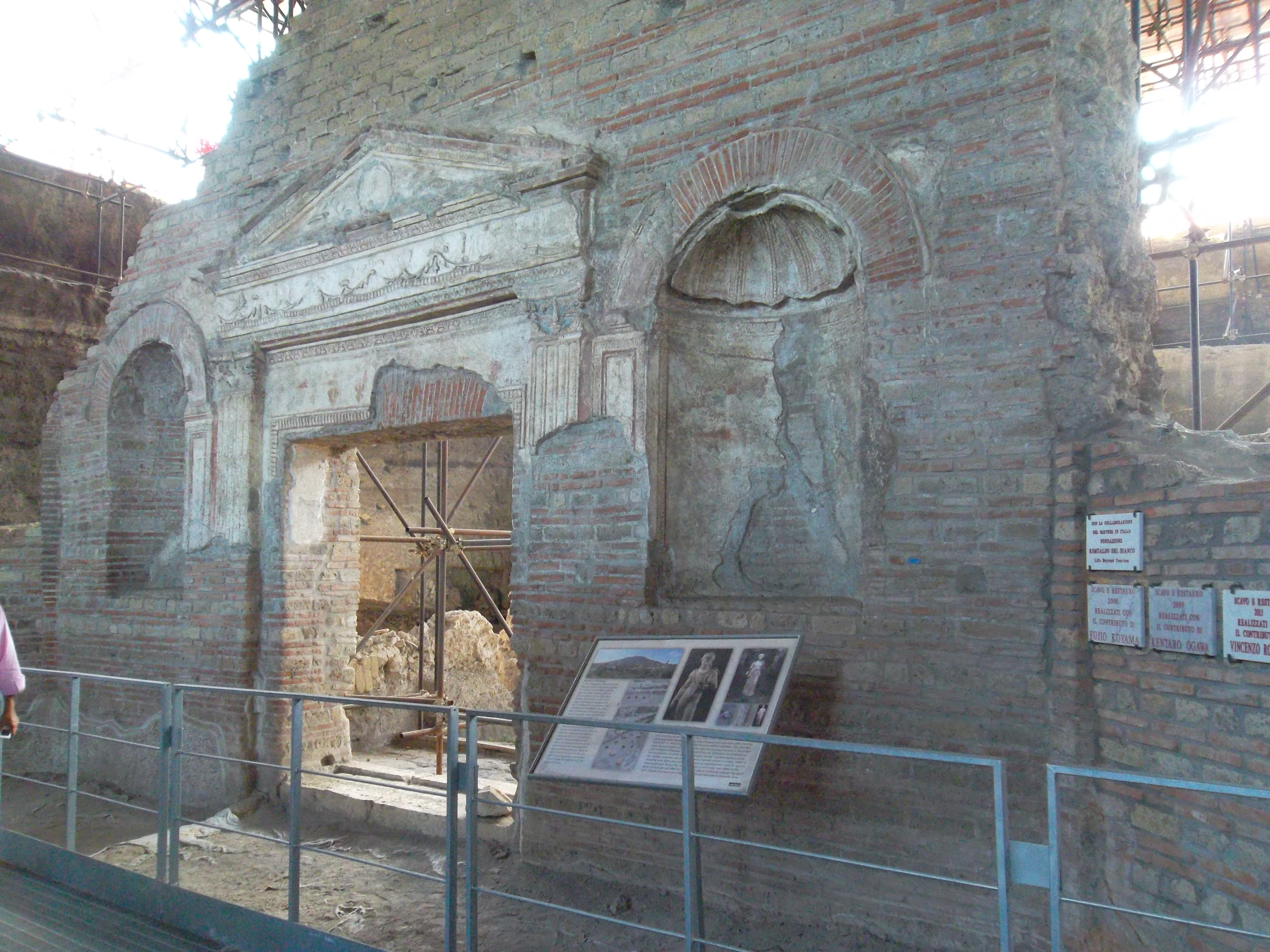 Le strutture finora riportate in luce fanno parte di un ampio edificio romano, costruito nella prima età imperiale che continua a vivere fino al V secolo d.C., cambiando nel tempo carattere e funzione, fino alla eruzione vesuviana del 472 d.C., che lo seppellì per oltre la metà della sua altezza. Bisognerà attendere gli anni ’30 del secolo scorso perché quei resti tornino alla luce grazie all’interessamento di Alberto Angrisani, dottore e farmacista di Somma Vesuviana. Gli scavi, eseguiti dal 1934 al 1936 da Matteo Della Corte, suo caro amico e direttore degli scavi di Pompei, sotto la supervisione di Amedeo Maiuri, portarono alla luce i resti di un edificio monumentale. Fra le vestigia allora scoperte, la più maestosa era la “colonnata con archi e pilastri” orientata da est ad ovest e di una lunghezza approssimata di 12 metri; essa era collegata perpendicolarmente ad un “muro di mattoni” decorato con tre nicchie. Inoltre furono scoperti “colonne e capitelli di marmo, pavimenti in mosaico, splendidi frammenti di statue raffiguranti persone con sontuose vesti, (…) stucchi policromi di muri e lacunari”. Nonostante il grande interesse del popolo di Somma, che inviò anche una richiesta di finanziamento a Mussolini per la prosecuzione dello scavo, non fu possibile andare avanti a causa della mancanza di fondi.