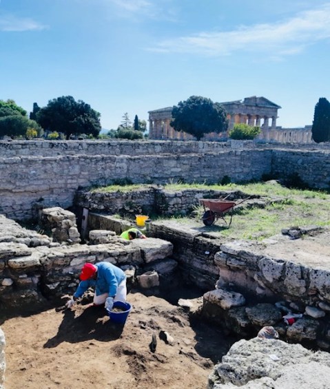 Scavi stratigrafici nel quartiere abitativo di Paestum. L’obiettivo è di indagare meglio l’architettura domestica e la vita quotidiana all’ombra dei tre templi dorici di VI e V sec. a.C., emblemi della Magna Grecia. Lo scavo di una struttura in grandi blocchi, presumibilmente una suntuosa dimora appartenente all’epoca tardo-arcaica (intorno al 500 a.C.), fu avviato tre anni fa dal direttore del sito, Gabriel Zuchtriegel, nominato nell’ambito dell’autonomia concessa al Parco Archeologico di Paestum dall’allora (e attuale) ministro Dario Franceschini. Nel frattempo, le indagini si sono allargate a un’abitazione adiacente, costruita in maniera più modesta. Come sottolinea il direttore, “desta interesse proprio la varietà economica e sociale in questo periodo cruciale per la città. Vogliamo comprendere meglio le dinamiche sociali e il tessuto economico che hanno permesso la realizzazione di opere come i templi dorici di Paestum e la Tomba del Tuffatore. Al tempo stesso, vogliamo rendere i visitatori e le scuole partecipi: come ogni anno, potranno seguire le attività di scavo durante visite quotidiane e sui social del Parco”. Anche quest’anno, lo scavo beneficia di due borse di studio finanziate dal Pastificio G. Di Martino – proprietario del marchio Antonio Amato. Due giovani archeologi, Rachele Cava e Guglielmo Strapazzon, sono stati selezionati sulla base di un bando nazionale e seguono le operazioni sul posto. Il progetto #ilgustodellascoperta è stato avviato nel 2016 con una sponsorizzazione del Pastificio Antonio Amato che aveva destinato un contributo di 45mila euro per finanziare due borse di ricerca per tre anni.